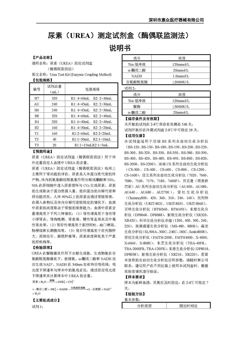 • 尿素(UREA)測定試劑盒(酶偶聯監測法)