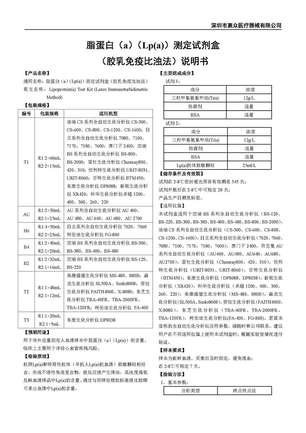 • 脂蛋白(a)(Lp(a))測定試劑盒(膠乳免疫比濁法)