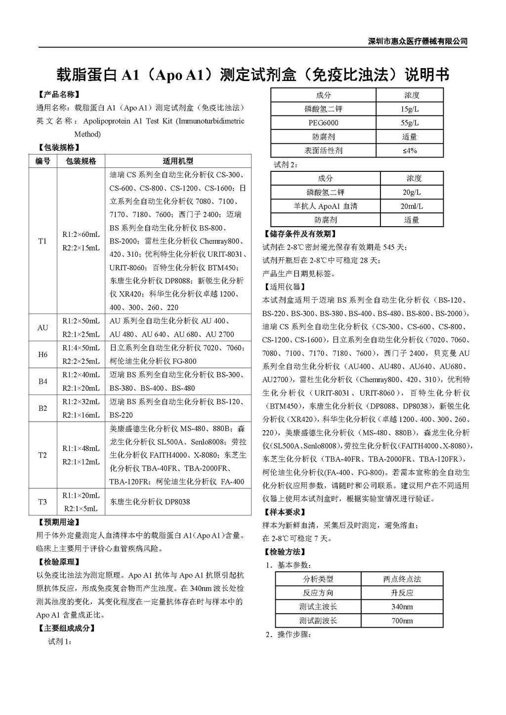 • 載脂蛋白A1(Apo A1)測定試劑盒(免疫比濁法)