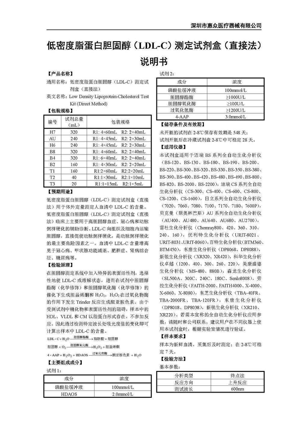 • 低密度脂蛋白膽固醇(LDL-C)測定試劑盒(直接法)